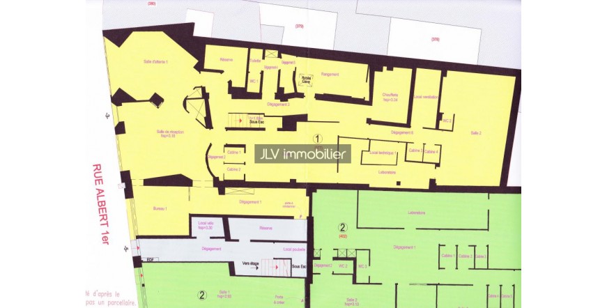 Local commercial 430 m² A VENDRE Dunkerque 59140 centre ville Murs Commerciaux libre d'occupation ( cessation d'activité) d'une surface de 430 m² sur Rdc et 1er Etage , en sous sol 65 m² . Bon état général. Superficies privatives calculées : Salle de réception 30.25 m2 Salle d'attente 1 23.93 m2 Bureau 1 12.28 m2 Dégagement 1 14.85 m2 Dégagement 2 3.28 m2 Cabine 1 1.47 m< Palier 1 Dégagement 7 Bureau 2 WC3 Dégagement 8 Bureau 3 Cabine 2 1.48 m2 Salle 1 25.92 m2 Dégagement 3 18.49 m2 Réserve 5.96 m2 Dégagement 4 2.91 m2 Toilette 1.37 m2 WC 1 1.12 m2 Dégagement 5 2.38 m2 Rangement 11.05 m2 Palier 2 Bureau s Bureau 6 Cuisine Bureau 7 Bureau 8 Local technique 2 Bureau 9 4.44 m2 2.53 m2 20.70 m2 1.08 m2 5.99 me 23.54 m2 31.23 m2 7.09 m2 13.62 m2 40.13 m2 17.91 m2 8.45 m< 8.34 m2 3.18 m7 11.49 m2 Dégagement 6 4.90 m2 Laboratoire 13.67 m2 Local technique 3.42 M< TOTAL 431.72 m2 Cabine 3 1.33 m2 Cabine 4 1.33 m2 Salle 2 33.98 m2 WC 2 0.89 m2 et portant définition de la superficie privative Local ventilation 6.77 m2 Chaufferie 8.97 m2 (Superficie annexe : 89.53 m= (Sous-sol) Les informations sur les risques auxquels ce bien est exposé sont disponibles sur le site Géorisques : www.georisques.gouv.fr Dont 4,74 % TTC d'honoraire à la charge de l'acquéreur inclus dans le prix affiché 🏡 JLV IMMOBILIER : Votre partenaire de confiance pour tous vos projets immobiliers ! Achat, vente, location, gestion ou expertise : quel que soit votre projet, notre équipe d’experts vous accompagne avec professionnalisme et écoute. Forts de 20 ans d’expérience et de plus de 1500 biens vendus, nous mettons notre connaissance approfondie du marché à votre service pour concrétiser vos ambitions immobilières. Pourquoi nous choisir ? ✅ Expertise reconnue : une équipe de négociateurs expérimentés, à l’écoute de vos besoins. ✅ Services complets : vente, location, gestion locative, expertise pour tous types de biens (appartements, maisons, terrains, fonds de commerce, stationnements…). ✅ Estimations gratuites et sans engagement : évaluez votre bien en toute sérénité. ✅ Deux agences à votre service : à Saint-Pol-sur-Mer (Dunkerque) et à Gravelines, pour un accompagnement de proximité. 📍 Nos agences : Saint-Pol-sur-Mer : 16 Rue de la République, 59430 Dunkerque Gravelines : 7 Rue de la République & 1 Rue Léon Blum, 59820 Gravelines 📞 Un seul numéro pour nous joindre : 03 28 64 31 42 🌐 Plus d’infos et de photos sur www.jlv-immobilier.fr Horaires d’ouverture : Lundi au vendredi : 9h-12h / 14h-18h00 Samedi : 9h00-12h JLV Immobilier, c’est l’assurance d’un accompagnement personnalisé et serein pour tous vos projets immobiliers. Contactez-nous dès aujourd’hui !
